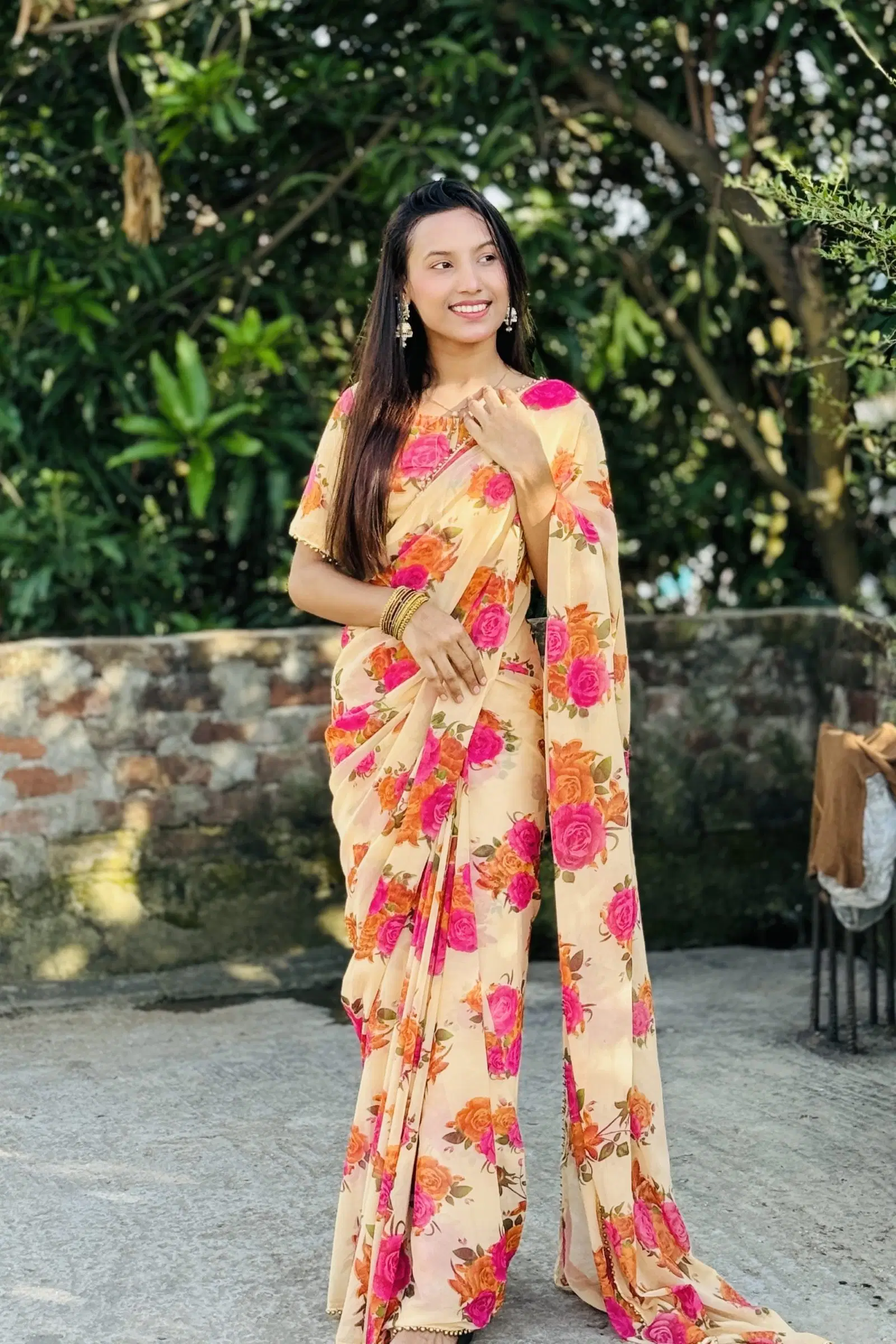 •  ইন্ডিয়ান ওয়েটলেস জর্জেট শাড়ি