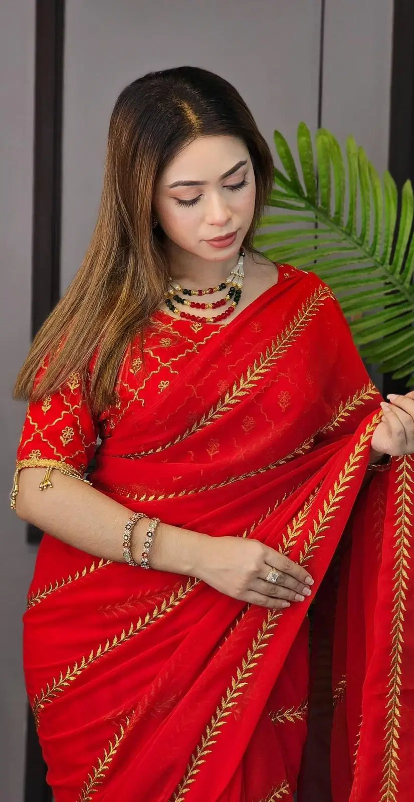 - প্রতিটি শাড়ি ও ব্লাউজ এমব্রয়ডারি কাজ করা